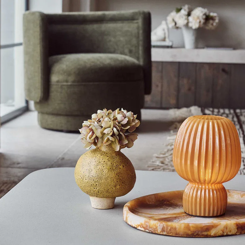 Use your cushions, throws and lamps to bring in the interest. Create colour pops where you have a neutral space. You can also bring in natural elements such as plants, reclaimed wood or glass. Just something simple like branches in a vase can elevate your autumn coffee table.