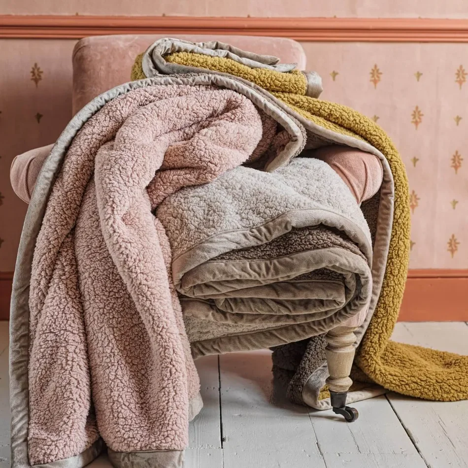 My favourite place for throws, quilts, blankets and the like is Graham and Green. They have a really stylish selection and the quality is fabulous. One of my favourites is the sherpa throw. I’ve just bought one in Blush, to warm up my brown leather sofa for Autumn.